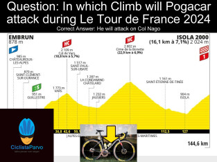 Question: In which Climb will Pogacar attack during Le Tour de France 2024 Stage 19? Correct Answer: He will attack on Col Nago